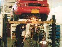 I was looking for a replacement for the standard Toyota system to help reduce the turbo lag. The way forwards here was to fit a cat replacement pipe and free flowing exhaust. Hayward and Scott are well known for their full stainless hand made systems, produced for Ralliart, Scoobysport, Porsches, and many Japanese imports. Because of this, and their experience with Celica GT-4s John Luck and myself met up with them to discuss what they could do for a MR2 Turbo. We agreed they would produce a classic Y design system for our MR2's that wouldn't be louder than 98dB to meet trackday noise limits, with silencers in each branch of the Y shape and dual 3.5" tips rolled in. I was also going to get a cat replacement pipe, as a loophole in MOT tests allows imports with no direct UK equivalent (upto July '95) to have a non-cat test. Rolling Road - 1999