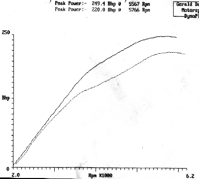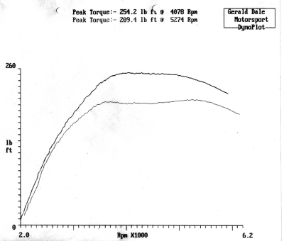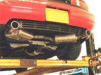 I was looking for a replacement for the standard Toyota system to help reduce the turbo lag. The way forwards here was to fit a cat replacement pipe and free flowing exhaust. Hayward and Scott are well known for their full stainless hand made systems, produced for Ralliart, Scoobysport, Porsches, and many Japanese imports. Because of this, and their experience with Celica GT-4s John Luck and myself met up with them to discuss what they could do for a MR2 Turbo. We agreed they would produce a classic Y design system for our MR2's that wouldn't be louder than 98dB to meet trackday noise limits, with silencers in each branch of the Y shape and dual 3.5" tips rolled in. I was also going to get a cat replacement pipe, as a loophole in MOT tests allows imports with no direct UK equivalent (upto July '95) to have a non-cat test. Rolling Road - 1999